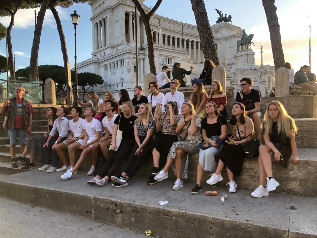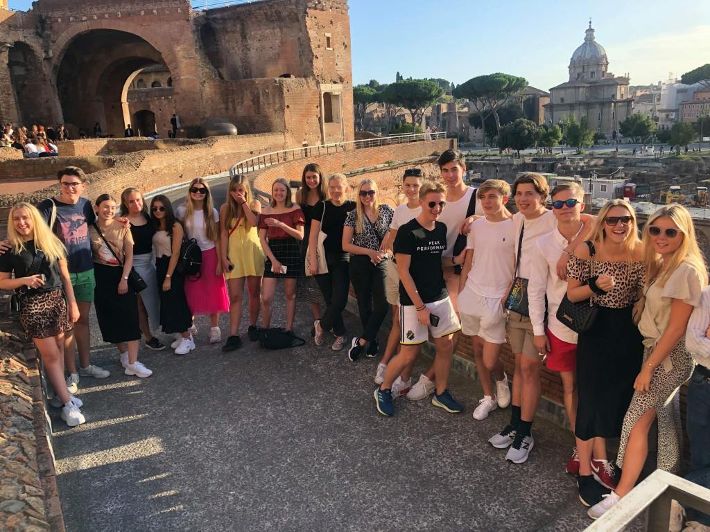 Årskurs 2 kickstartade med en UF-kickoff på Upzone där vi fick möta och övervinna våra rädslor samtidigt som vi fick en bra start på UF-året. Strax därefter drog vi till det stövelformade landet ITALIEN där vi, i rasande tempo, fick en snabbkurs av Italiens alla sevärdheter. Denna resa har och kommer finnas kvar i våra tankar en lång tid framöver – en resa med oerhört magiska minnen, en hel del pasta och fantastiska vyer! Efter detta drog UF-hösten igång rejält med hårt arbete som till slut mynnade ut i en redovisning på Swedbank i december. Nytt år, nya möjligheter – men tyvärr dröjde det inte länge innan COVID-19 satte stopp för detta. Från och med i mitten på mars blev det hemundervisning som hade sina för- och nackdelar. Med lite mer sömn arbetade vi hårt med skolan och hemmet blev den nya skolsalen men som tyvärr saknade klassen och det sociala 😦